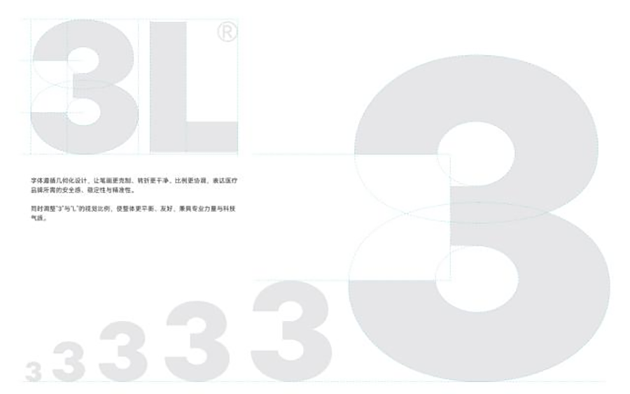 · 字体:调整数字“3”与字母“L”的比例,使整体形态更更专业、冷静、克制与稳定感,传递出医疗品牌特有的严谨与可靠。